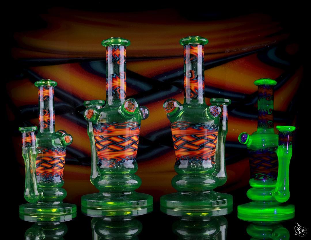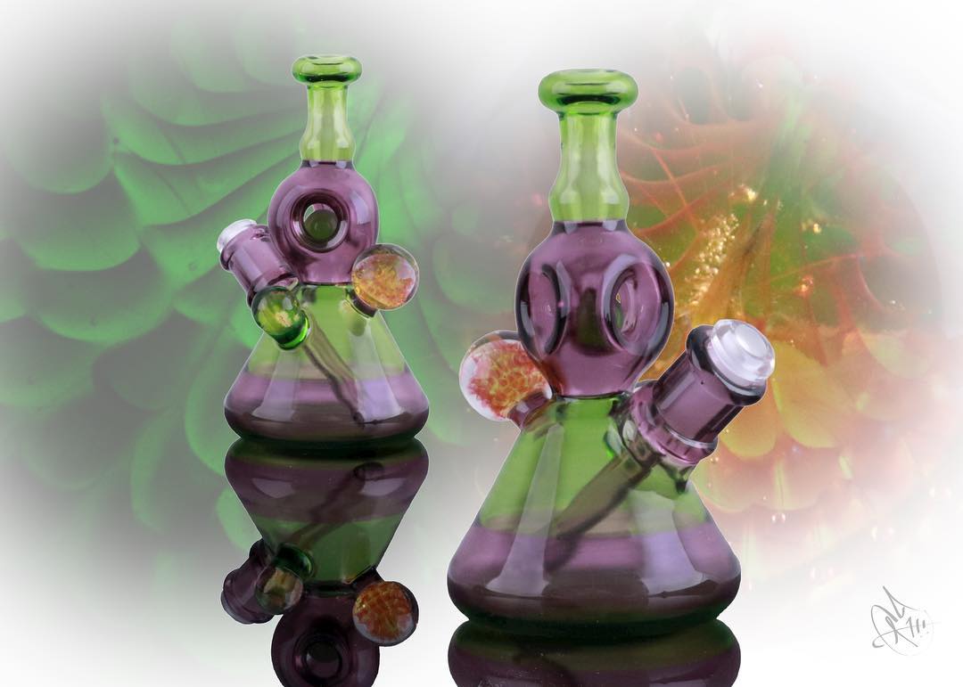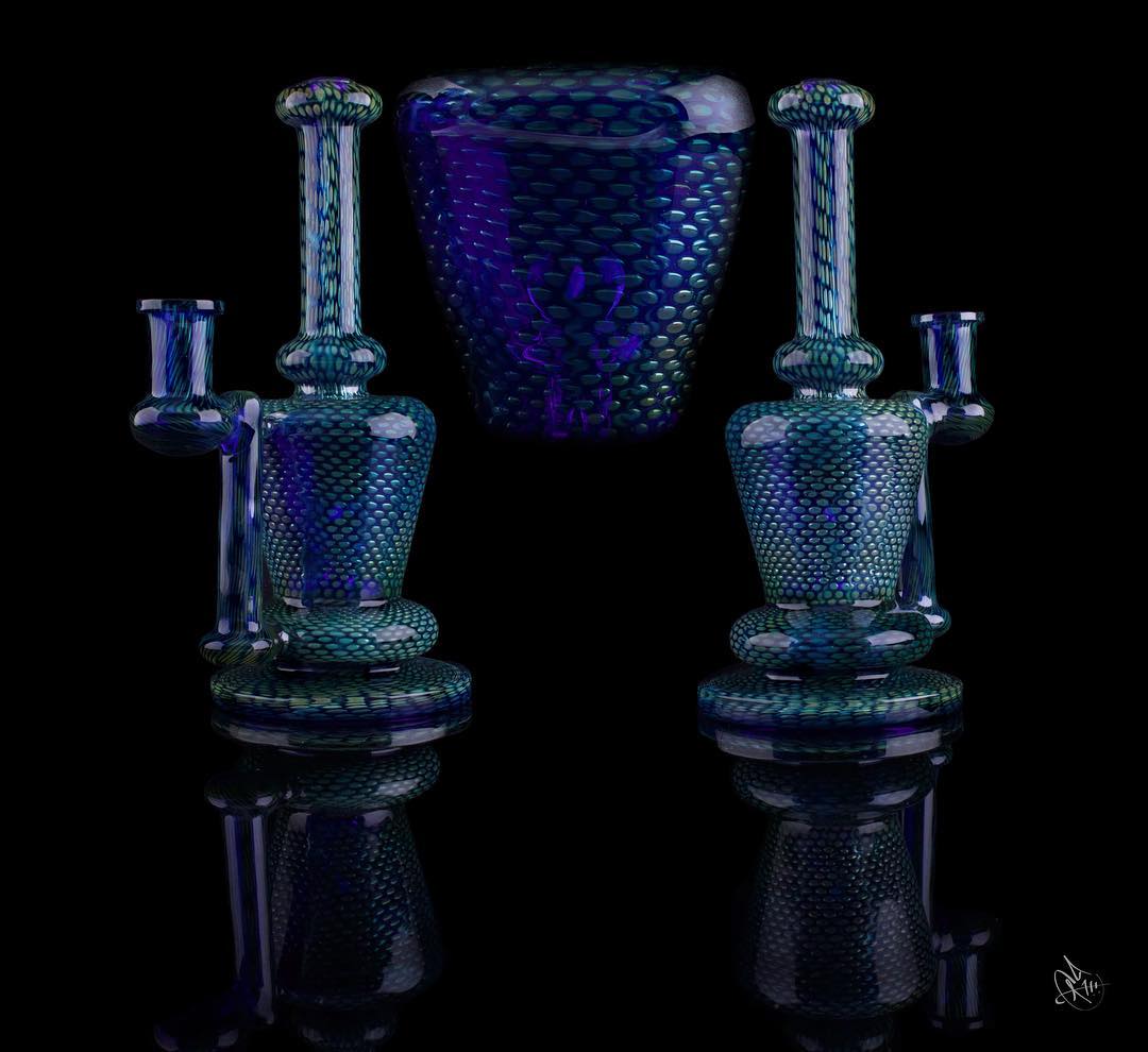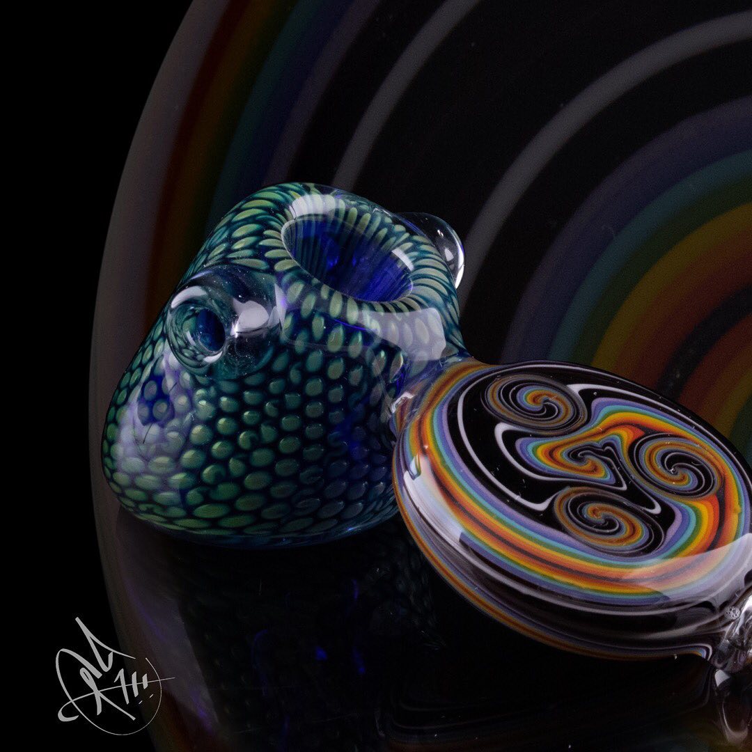 Joel says the person that really got him into glass was Chad Tyson, the owner of Geostrophic. Joel Halen stays inspired by older glass blowers that still make good work, he specifically mentioned Ease, Cowboy, and Banjo as some of his favorites. In his free time Joel enjoys shooting, hockey, and taking care of his pet potbelly pig. According to Joel, aliens exist and are in the process of recreating and improving our iced creams.
